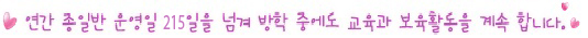 - ¾Æ¹öÁö Áö¿ø : Á¤±âÀûÀÎ ¾Æ¹öÁö ¸ðÀÓ, °Ç°Ã¼À°È°µ¿, ºÎ¸ð±³À°Âü¿© °¡Á·À» À§ÇÑ Çà»ç(µî¹Ý´ëȸ, °¡Á·¿îµ¿È¸ µî) ¾Æ¹öÁö¿Í ÇöÀåÇнÀ, ¾ÆºüȨÆäÀÌÁö¸¦ ÅëÇÑ °øÀ¯